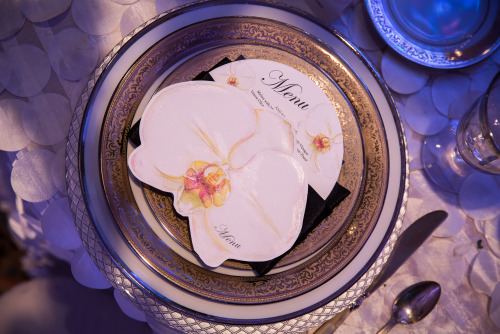 Photo by Vito Rade Photography for Bridal Expo Chicago + Milwaukee Luxury Shows. Invitation dinner menu by Carol Woldhuis Designs.